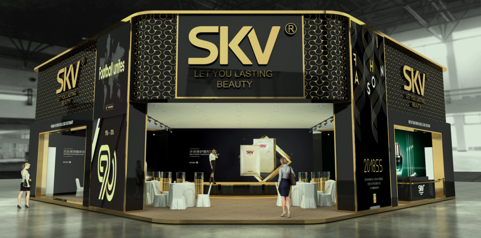 SKV上海展台设计搭建简介:SKV 是取自英文Skin vitality 的缩写,意为肌肤活力,这直接体现了SKV系列产品的理念:用科技来激发来自肌肤从内而外的肤质,从而改进亚洲女性的肌肤问题。